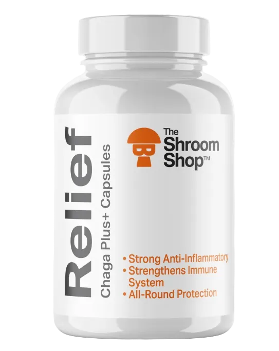 Does it take you 10 minutes of moans and groans to get out of bed every morning? Have you got an old sports injury that has you in a constant state of pain that won’t budge? If you have, it is easy to turn to painkillers for relief, however long-term usage can be damaging. We’ve developed The Shroom Shop Relief: Chaga+ Capsules for natural relief from aches and pains, this specially formulated capsule contains powerful anti-inflammatory ingredients to reduce the cause of the pain at the source.