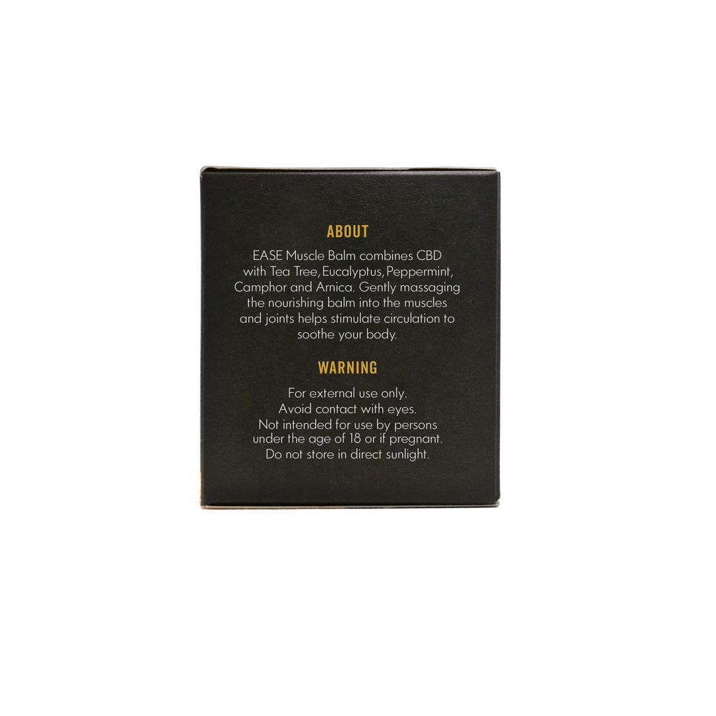 Apply the EASE CBD Muscle Balm liberally and gently massage over affected areas until completely absorbed. The unique formulation works well first thing in the morning and post-exercise to help you move freely, as well as in the evening to help ease your muscles and aching joints after a long day.